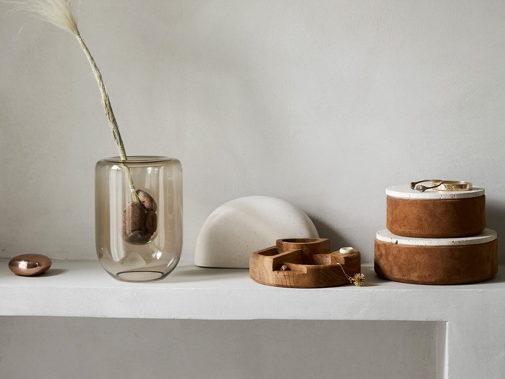 If this edit didn’t include at least two pieces from Kristina Dam Studio, then we could not have, in good conscience, included the word Minimalist. And so here we are with another outstanding sculptural piece from the Queen herself. The opal glass vase is one of those pieces that commands attention by whispering, similar to that teacher you had in primary school. The one who’d get the class to focus in by speaking ever so quietly, you’d immediately stop messing about just to make out what they were saying. Yeah, vases can do that too. Its unique recess-within-a-recess design and slightly tinted colouring, makes it a piece that creates intrigue, captivating and mesmerising an audience through its soft expression.