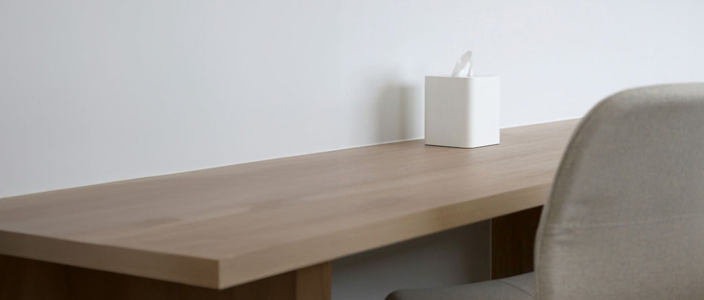 There’s nothing worse than starting your work day with unsightly cardboard tissue boxes. But fear not, there’s a solution: our Square Tissue Box Covers are designed to banish the eyesore from your home office. Crafted from durable coated metal and featuring a magnetic stainless steel lid, it effortlessly conceals most standard size tissue boxes. With 4 rubber feet ensuring it stays in place on any surface and an easy-to-clean design, keeping your workspace tidy has never been easier.