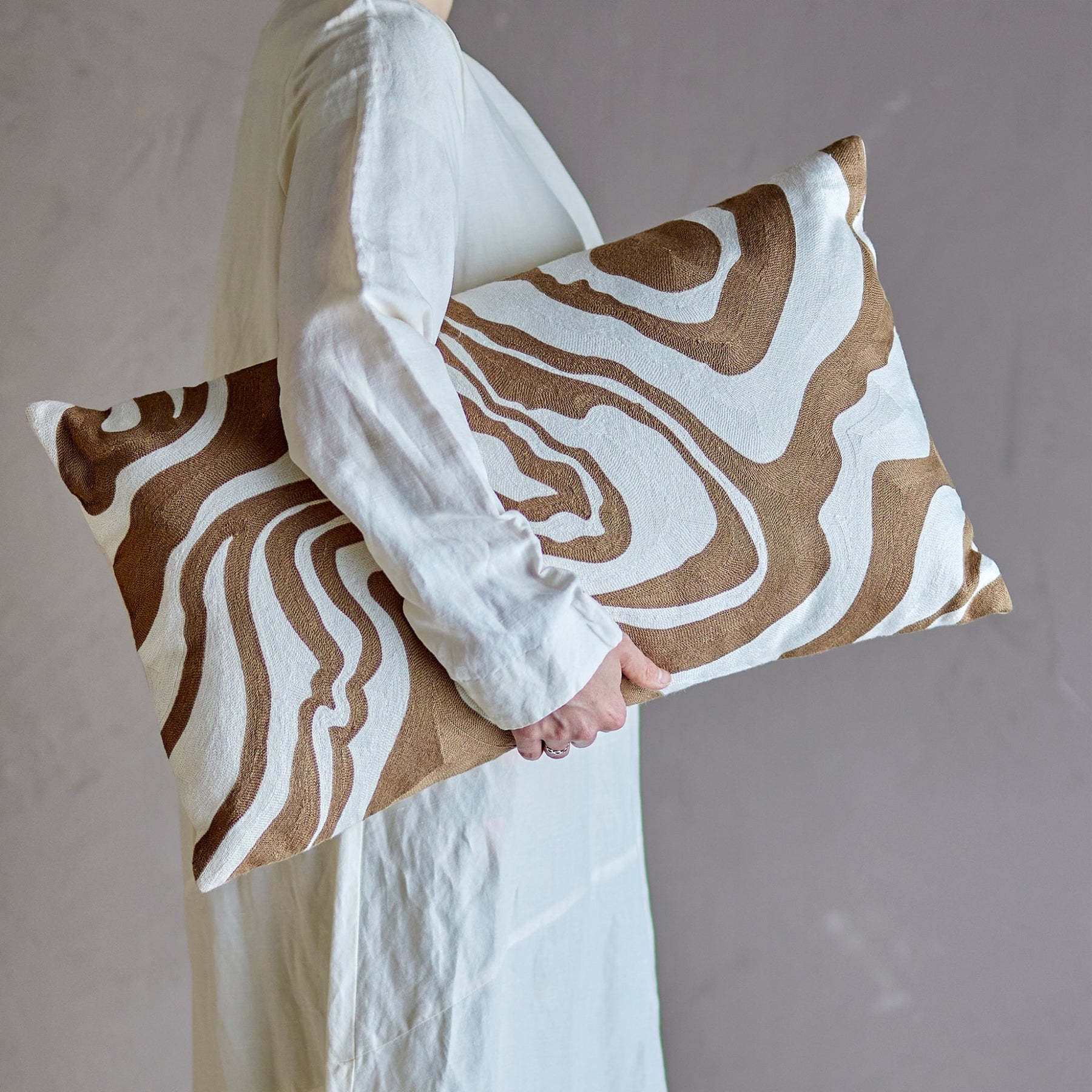 $106.27 $106.27Structured cotton on the front, a soft natural shade on the back—the Aba Cushion by Bloomingville brings warmth and movement to any space. Its flowing white and light brown pattern creates a lively, organic look that feels both relaxed and expressive.