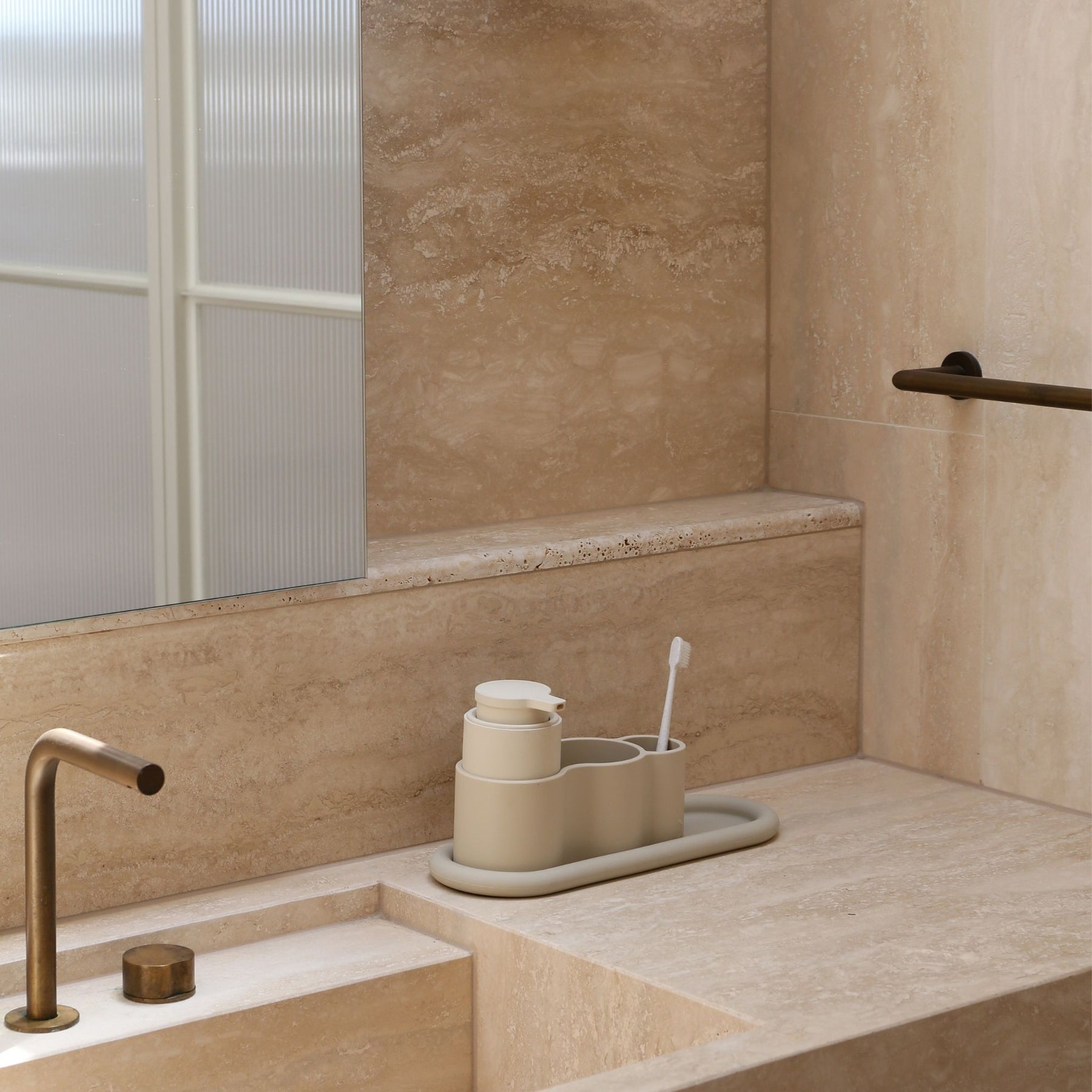 The ARC Soap Dispenser is a countertop essential that keeps things clean, simple and visually in sync. It holds 500 ml of liquid soap, gel hand sanitiser or skin lotion, offering just the right capacity for daily use without constant refilling. Made from durable, rubber-coated poly resin with a smooth matte finish, it is gently weighted and shaped with the same softly rounded form that defines the collection, creating a cohesive, considered look whether styled alone or alongside other ARC pieces. The pump presses easily and sits within a clean, vertical profile that suits both minimalist and modern spaces.