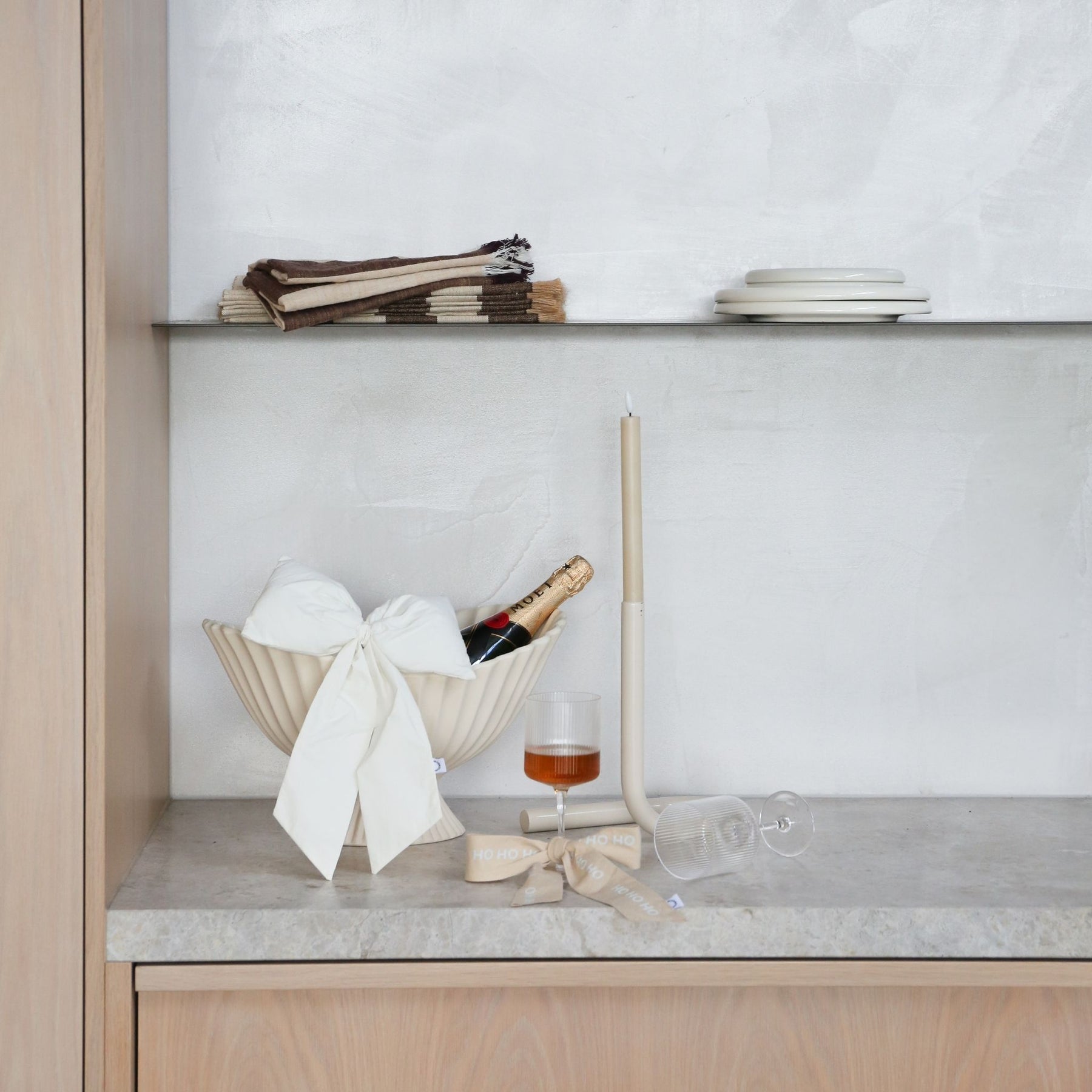 The Christmas Door Bow is made from structured fabric and padded for volume at the top, giving it a full, shaped form that settles in easily and stays put all season. Its long tails fall naturally, adding height and softness to whatever it’s tied to: cupboard handles, door panels, hallway hooks.