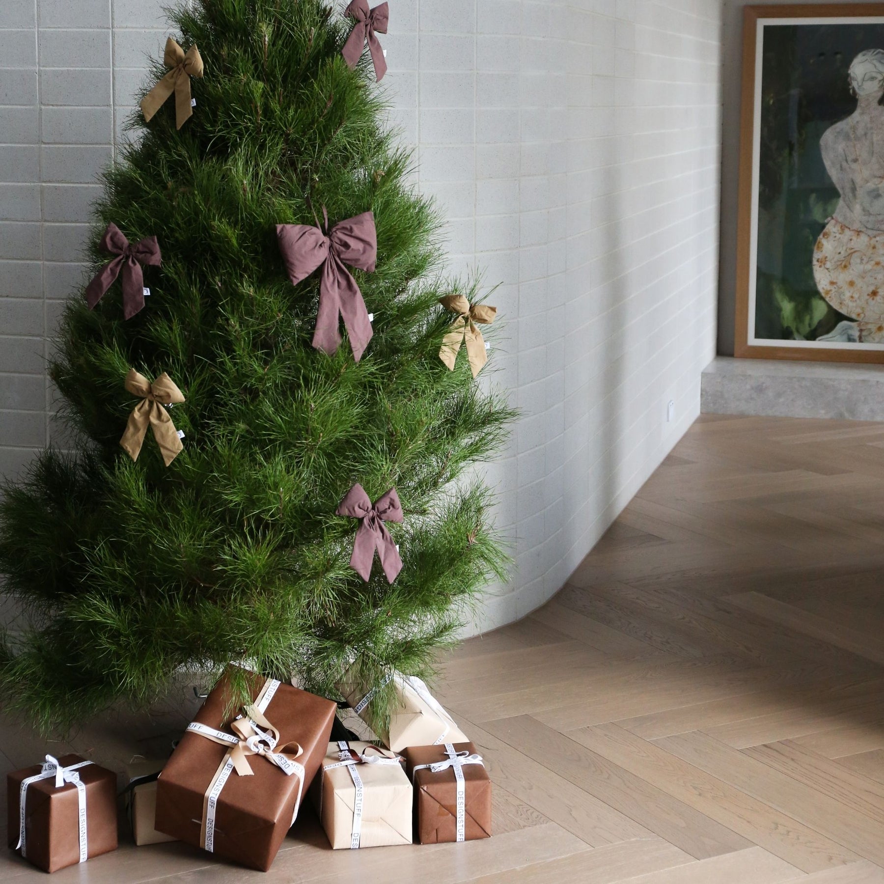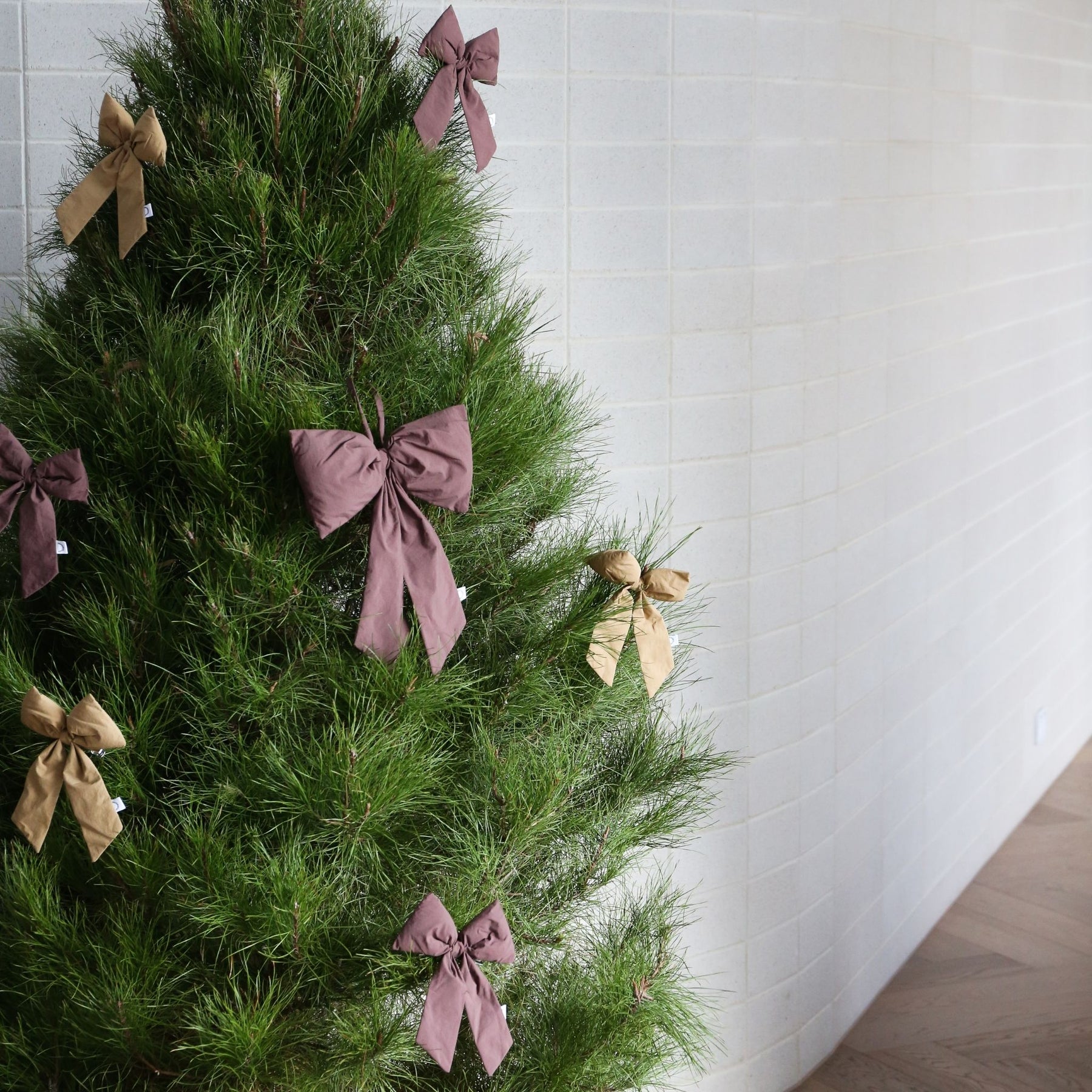 Our Tree Clip Christmas Bow is made from structured fabric creating a compact, shaped form that holds neatly. Its tails add just enough length to soften an edge or break up bare greenery.