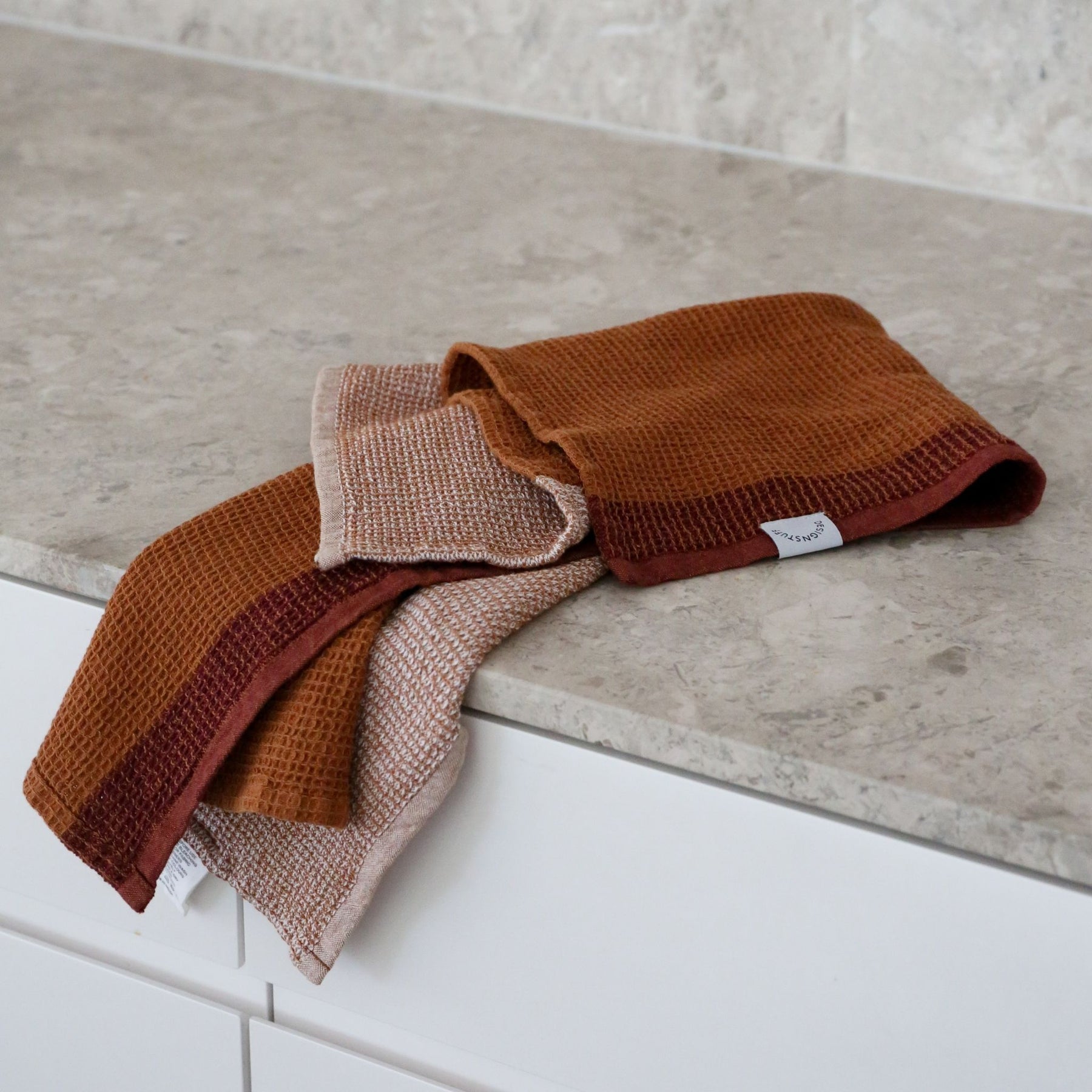 DESIGNSTUFF ETTA Waffle Tea Towel, Cinnamon/White (Set of 2)