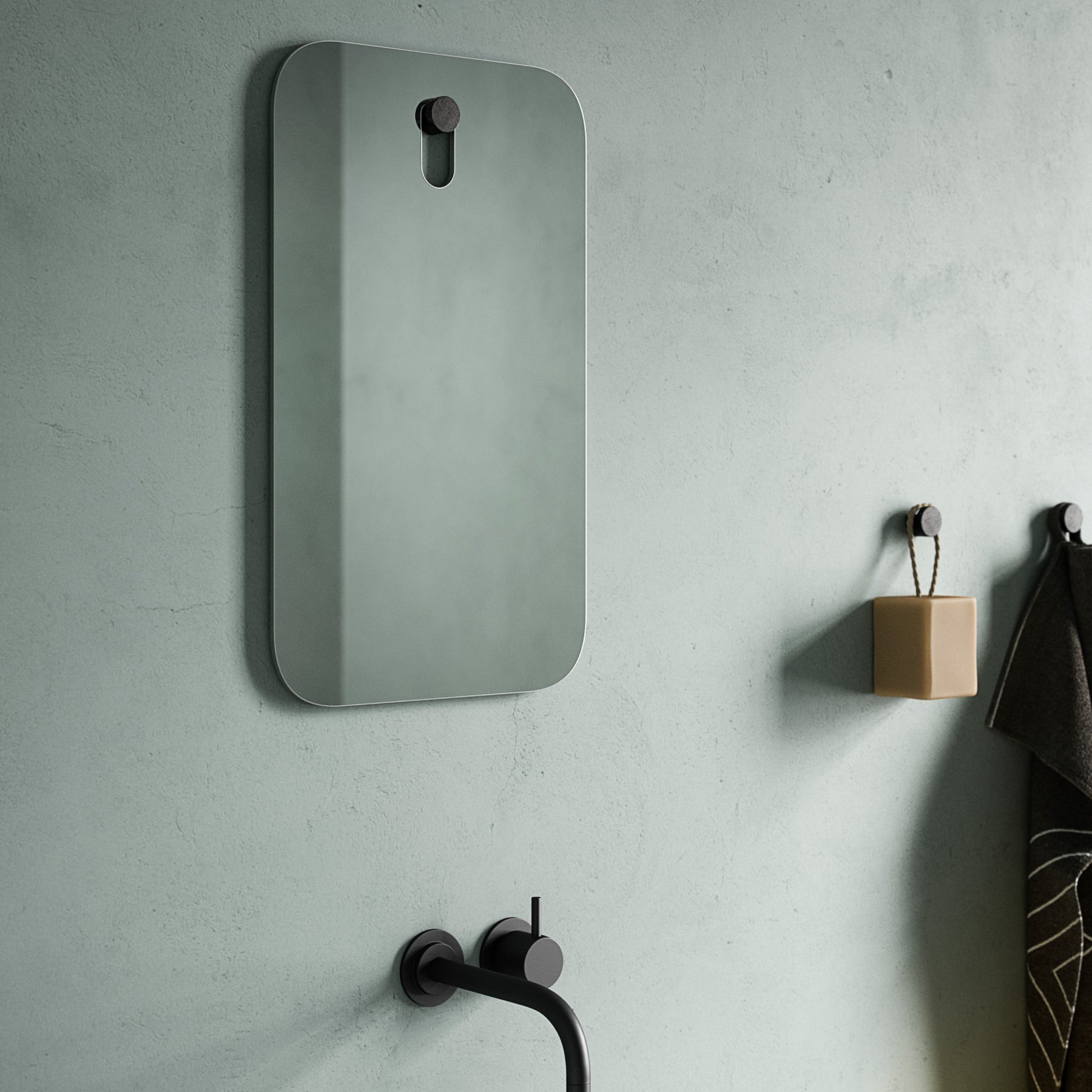 Every mirror includes a small Wood Knot in Nature colour, adding a warm, organic counterpoint to its crisp silhouette.