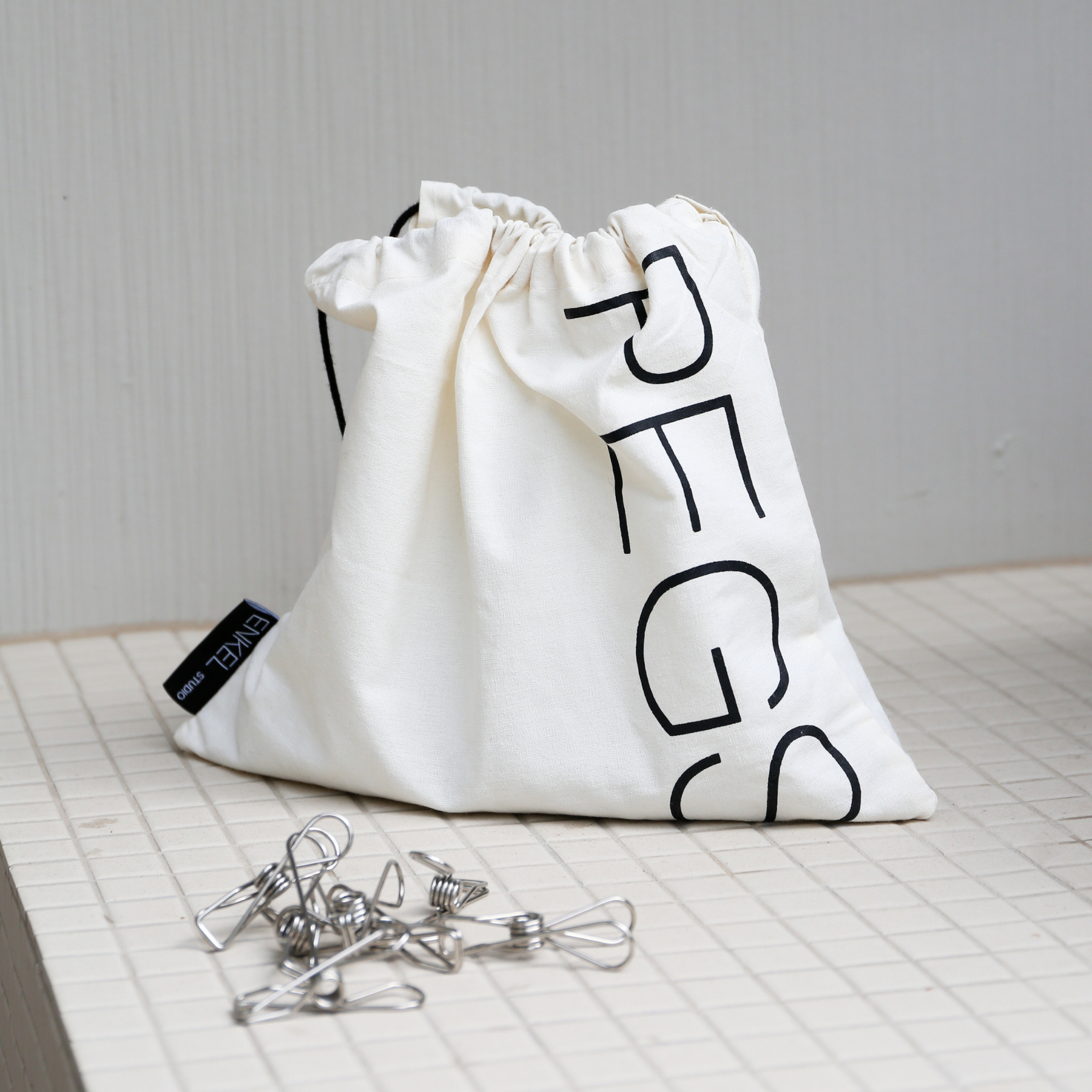 The system is designed for convenience. Use the bag to carry pegs to the line; the included S-hook lets you hang the pouch for easy access from your clothesline or a hook. It's also designed to perfectly fit the ENKEL STUDIO Basket S (sold separately), for a complete, tidy laundry station.