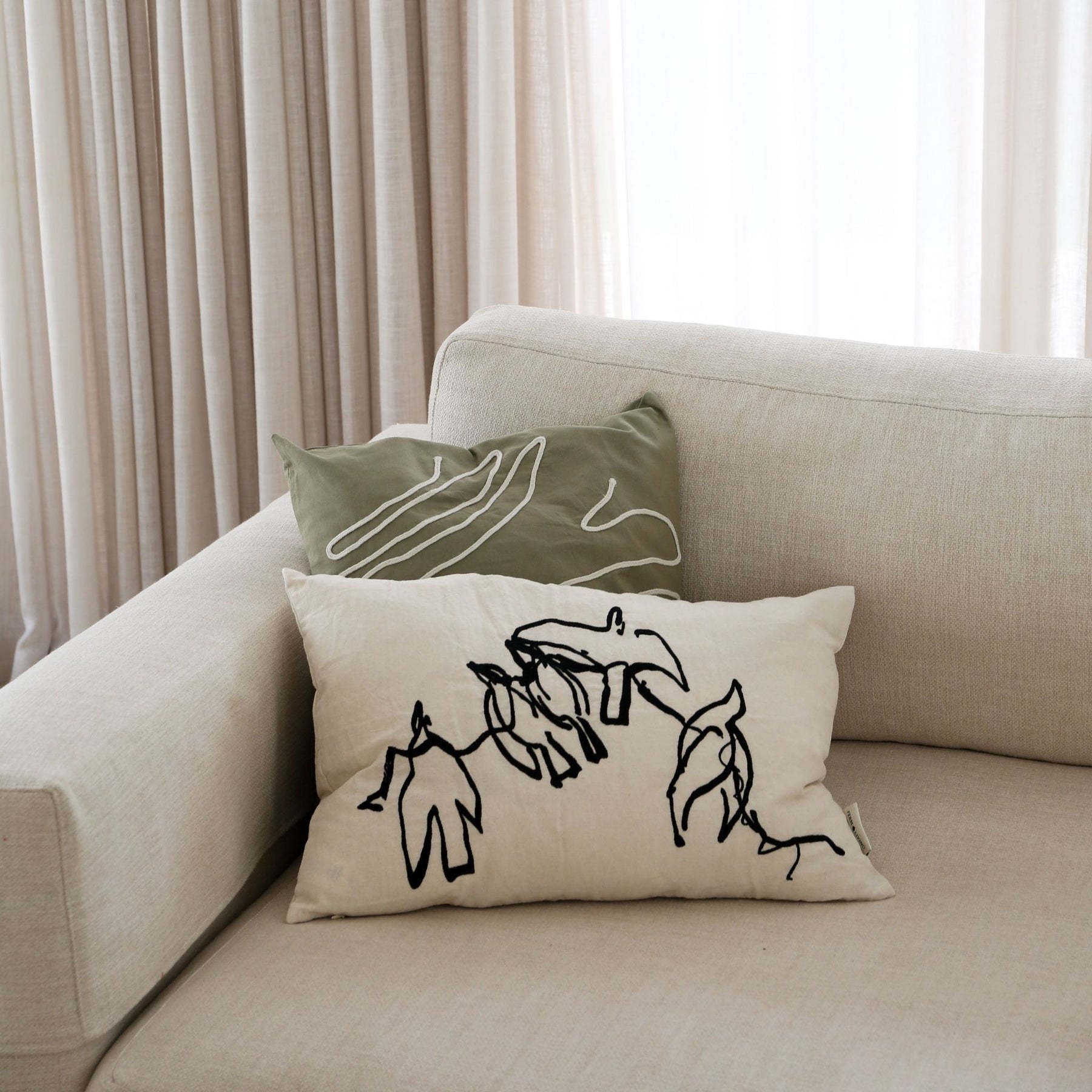 Inspired by the gentle rhythm of shorelines and flowing water, the Jot Cushion brings movement and texture into focus. Crafted from 100% GOTS-certified cotton, it features hand-stitched contrasting braiding set against a structured canvas base—an artful expression of nature’s quiet details.