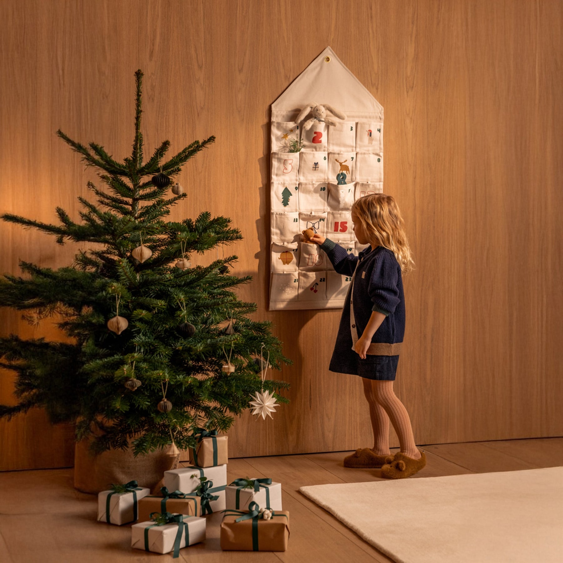 $144.90 $144.90Featuring 24 pockets for small surprises, this children's cotton Christmas calendar brings excitement to the countdown to Christmas. Designed for easy refilling each year, it adapts to your child’s evolving interests while adding a festive touch.