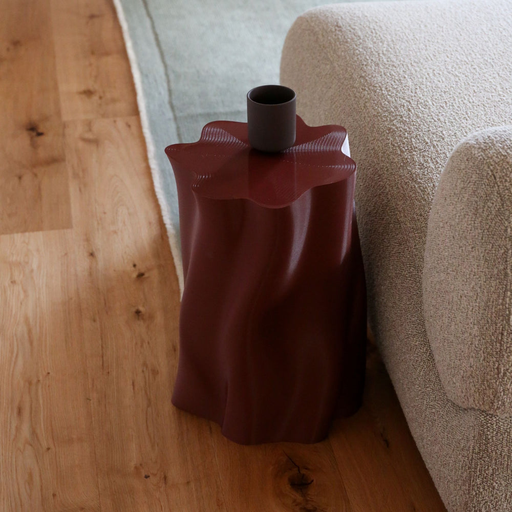 Architectural shape with a soft matte burgundy finish